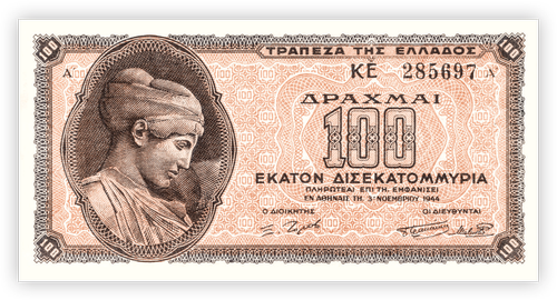 Η συλλογή μας προσφέρει 120 χαρτονομίσματα, όχι μόνο της Τράπεζας της Ελλάδας και της Εθνικής Τράπεζας, αλλά και όλων των άλλων τραπεζών, όπως της Ιονικής Τράπεζας, της Τράπεζας Κρήτης, της Τράπεζας Ηπειροθεσσαλίας αλλά και τοπικές εκδόσεις περιφερειακών τραπεζικών καταστημάτων. Και όχι μόνο του ελληνικού κράτους, αλλά και της Γερμανικής Κατοχής, της Ιταλικής Κατοχής, της Βρετανικής Στρατιωτικής Αρχής. Και όχι μόνο τα τυπικά χαρτονομίσματα αλλά και τα κερματικά, που εκδόθηκαν στη θέση μεταλλικών νομισμάτων. Στη συλλογή υπάρχουν ολοκληρωμένες όλες οι κύριες κρατικές εκδόσεις, ενώ για τις δευτερεύουσες εκδόσεις δίνονται αρκετά χαρακτηριστικά παραδείγματα.